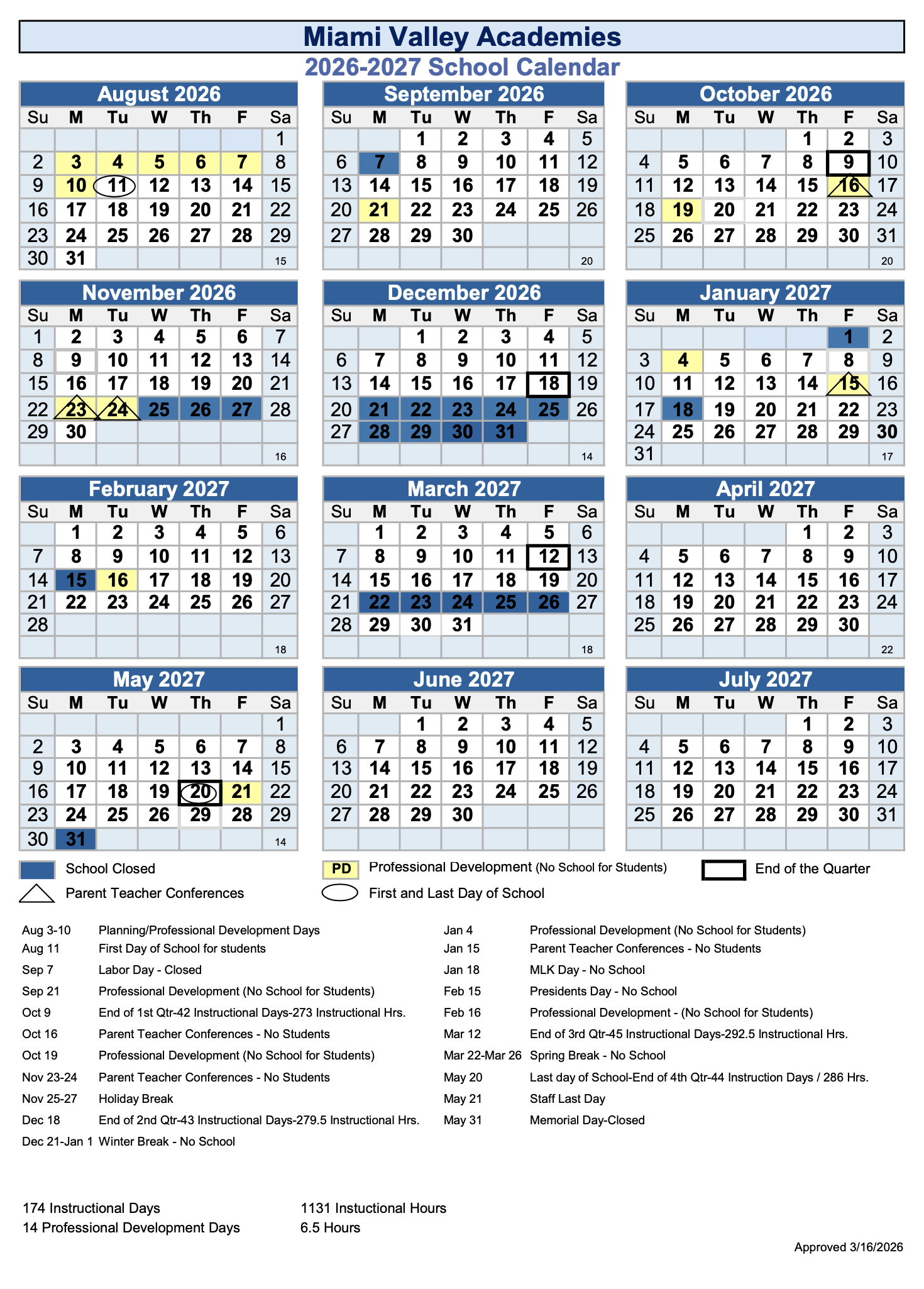2026-2027 School Calendar